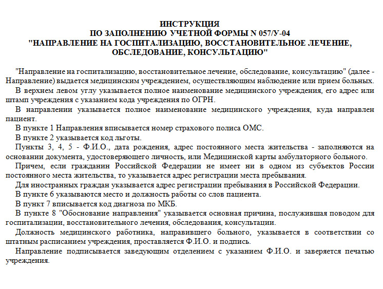 Перечень необходимых мероприятий для госпитализации